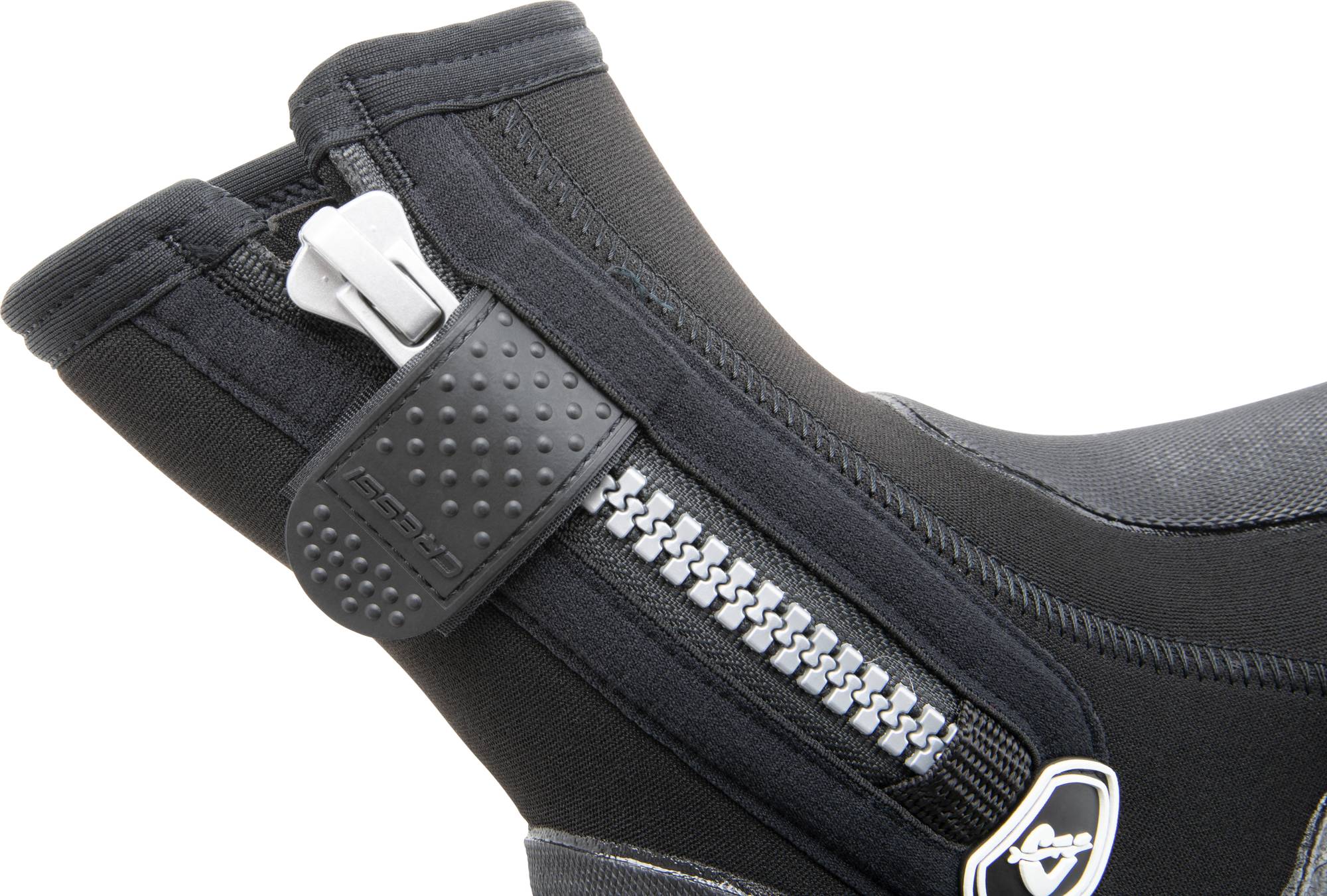 These boots, designed to be used with open heel fins, are made of soft nylon-lined neoprene 5 mm, ideal for cooler waters. Reinforced pu protection for instep and heel provides resistance against wear and tear. The notch for holding fin strap is integrated into the heel. A practical ykk zipper opens at the ankle for easy donning. Water seepage is reduced to the minimum thanks to a protective thin flap hydro seal under zip. The cressi personalized ankle strap has a velcro in the inner part. A rigid, non-slip and hi-grip moulding covers the entire sole