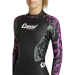 The new cressi swimming suit is inspired by the underwater caldera kuwae, located in the vanuatu archipelago in the south pacifi c ocean. The coral colour of the upper part of the wetsuit recalls the lava of the volcanic eruption, like the truly explosive design. This particular colour was also chosen to give the swimmer maximum visibility when in open water. Kuwae has been entirely designed with the help of sophisticated 3d software for the modelling of wetsuits, which made it possible to study the fi tting of the materials and the different sizes on virtual mannequins. In this way, cressi not only facilitates an innovative approach to research and development, but also obtains a positive environmental impact by eliminating unnecessary sample collections. The different thicknesses (2-3-4 mm) of the super-elastic materials favour buoyancy, help the swimmer to achieve a perfect trim when swimming on the surface and improve the fit in the arms/armpits, while ensuring complete freedom of movement. The striped material insert applied in the wrist area helps to move more water during the classic freestyle stroke. The new low neckline design has been studied to avoid any friction around the neck, while maintaining a perfect seal against water infi ltration. On the inner part of the under zip panel it is possible to customize the wetsuit with your name and insert the key of any means of transport in the special pocket. The ykk back zip guarantees tightness and resistance over time: the slider is made of anti-corrosion metal material, to ensure greater sturdiness when pulling the lanyard during the closing/opening of the wetsuit