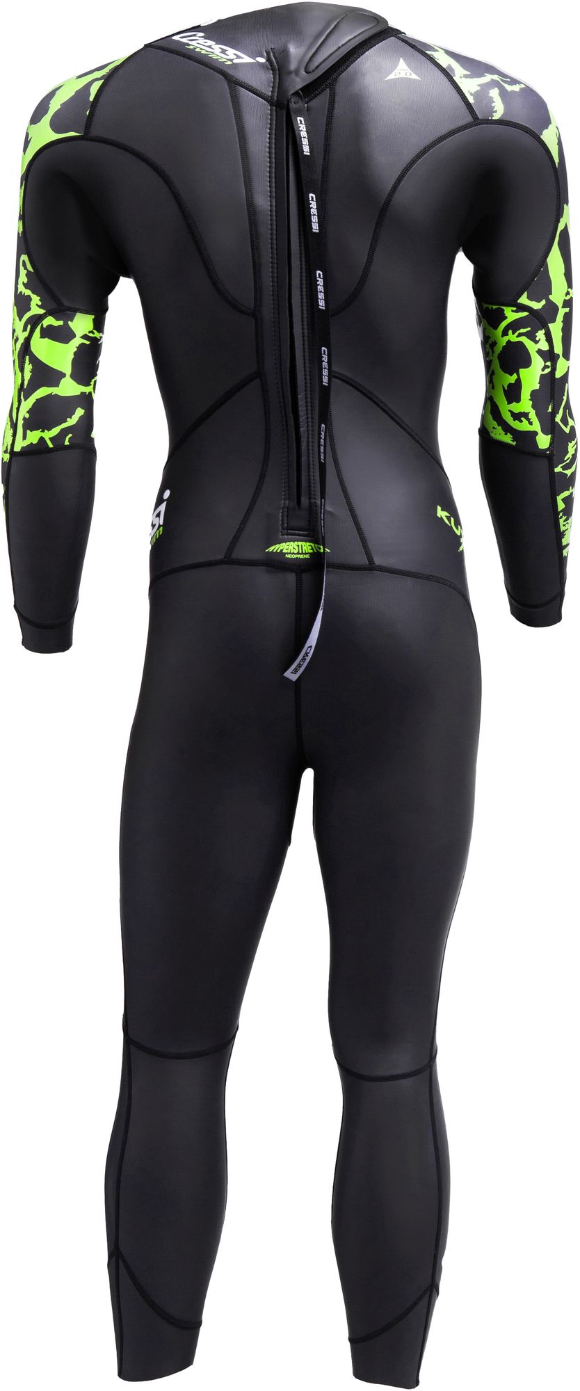 The new cressi swimming suit is inspired by the underwater caldera kuwae, located in the vanuatu archipelago in the south pacific ocean. The fluorescent colour of the upper part of the wetsuit recalls the lava of the volcanic eruption, as does the truly explosive design. This particular colour was also chosen to give the swimmer maximum visibility when in open water. Kuwae has been entirely designed with the help of sophisticated 3d software for the modelling ofwetsuits, which made it possible to study the fitting of the materials and the different sizes on virtual mannequins. Ln this way, cressi not only facilitates an innovative approach to research and development, but also obtains a positive environmental impact by eliminating unnecessary sample collections. The 2. 0 mm high-density hyperstretch neoprene optimizes comfort, provides uv protection, and protects swimmers against scratches while ensuring complete freedom of movement. The smooth exterior finish and the glide skin xt waterproof treatment guarantee exceptional hydrodynamics. The new iow neckline design has been studied to avoid any friction around the neck, while maintaining a perfect seal against water infiltration. On the inner part of the under-zip panel you can customize the wetsuit with your name and stash a key for any means of transport in the special pocket. The ykk back zip guarantees tightness and durability over time: the slider is made of anti-corrosion metal material, to ensure greater sturdiness when pulling the lanyard to zip/unzip the wetsuit