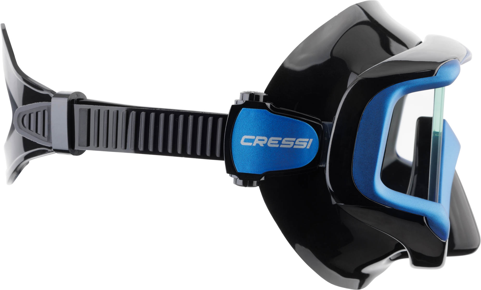The liberty triside features a wide mono front lens with 2-sided lenses to ensure a panoramic view without interruption. The result is a mask that allows maximum light and feels as open as the ocean itself. All lenses are tempered glass for the best clarity. The skirt is made in hypoallergenic silicone to ensure comfort and a perfect seal. It is a breeze to adjust the length of the strap thanks to the two buttons on the buckle, which can also be used while wearing gloves. The frame is colored with a paint effect that makes the mask elegant and beautiful to see, which can be coordinated with your equipment