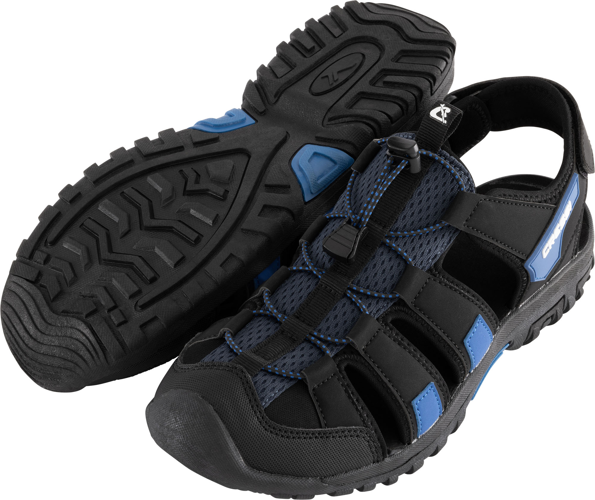 The “Luca” hiking sandal is the perfect companion for outdoor adventures, crafted to provide comfort, safety, and versatility. Featuring a durable rubber toe cap that wraps around and shields the toes, the sandal ensures a secure stride even on rugged terrains. Convenience takes center stage in the design, with an adjustable heel strap secured by a Velcro closure and an elastic lace around the collar, allowing for a customized fit that is quick and easy to adjust to individual feet. Especially well-suited for excursions in aquatic environments, the “Luca” sandal allows the foot to breathe, thanks to its breathable structure. The combination of highquality materials ensures durability and resilience, while the robust sole provides excellent traction on varying terrains. With its contemporary style and user-friendly adjustments, the “Luca” sandal is the perfect choice for those seeking a reliable companion to explore nature with both style and confidence.