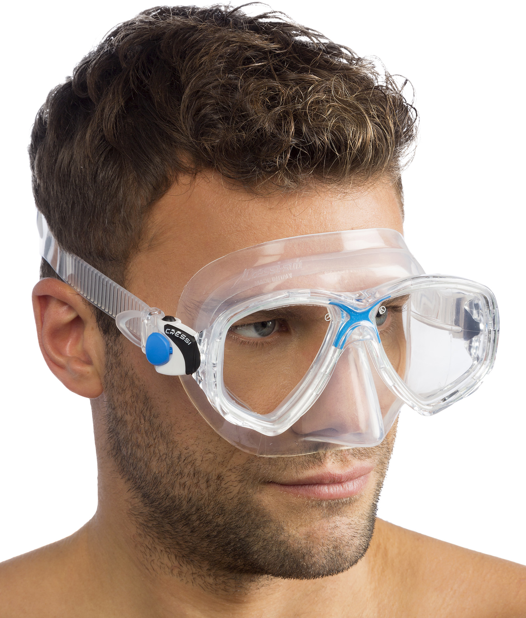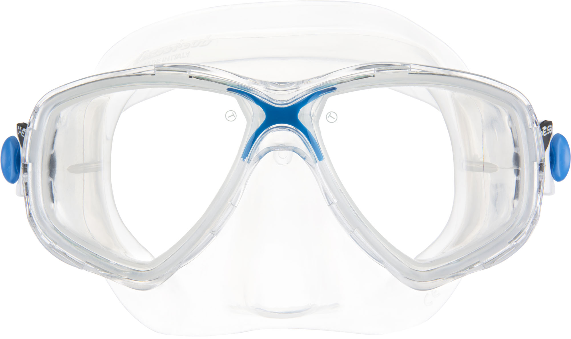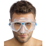 Evolution of the legendary Focus model, the most versatile and one of the most successful Cressi masks.The frame design is minimized in thickness and the lenses are slightly angled to improve vertical and horizontal visibility. Buckles with flexible anchorage 100% pivoting in all directions thanks to its flexible anchorage and with micro adjustment by button, with one hand. They avoid the usual breakages in this delicate point and maintain the stability of the mask once positioned and with the strap pulled. 100% multi-purpose mask suitable for apnea, snorkeling and diving. Very resistant also for use in diving centers or intensive use.