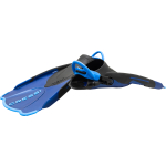 Maui short is a short fin, ideal for swimming in open and confined waters, and for snorkeling. For its robustness and practicality, is the ideal fin for safety and rescue teams operating on beaches. Maui short has been developed using the same calculation programs that we used to design on impulse and sprint fins, and on her “big sister” maui. Two side rails, built in two different materials, convoy the water towards the central part of the blade. The combination of a softer material and a stiffer one makes this fin extremely soft and extremely performing at the same time. When the blade flexes it creates a “spoon” effect and bouncing back in position it emits a great propelling power in return. The strap is built using an ebs system made of elastic rubbers, with a nylon lining, that guarantees a very long duration and resistance to abrasion. The heel is made of soft rubber, cut in an anatomic shape. This fin can be used with or without neoprene socks. The handle is wrapped around the heel, so that it does not interfere with the movement of legs and feet when swimming. The ebs system is very stable on its own, but we added a choker un the elastic bands to allow a fine tuning of the fin and to avoid an unwanted release. Maui short is a fin for swimming in the sea or in the swimming-pool, it can be used for snorkeling and it’s the fin of choice for rescue teams operating on beaches