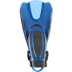 Maui short is a short fin, ideal for swimming in open and confined waters, and for snorkeling. For its robustness and practicality, is the ideal fin for safety and rescue teams operating on beaches. Maui short has been developed using the same calculation programs that we used to design on impulse and sprint fins, and on her “big sister” maui. Two side rails, built in two different materials, convoy the water towards the central part of the blade. The combination of a softer material and a stiffer one makes this fin extremely soft and extremely performing at the same time. When the blade flexes it creates a “spoon” effect and bouncing back in position it emits a great propelling power in return. The strap is built using an ebs system made of elastic rubbers, with a nylon lining, that guarantees a very long duration and resistance to abrasion. The heel is made of soft rubber, cut in an anatomic shape. This fin can be used with or without neoprene socks. The handle is wrapped around the heel, so that it does not interfere with the movement of legs and feet when swimming. The ebs system is very stable on its own, but we added a choker un the elastic bands to allow a fine tuning of the fin and to avoid an unwanted release. Maui short is a fin for swimming in the sea or in the swimming-pool, it can be used for snorkeling and it’s the fin of choice for rescue teams operating on beaches