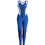 Designed with Italian pattern-making expertise, the anatomically shaped panels and pre-formed arms and legs mirror the body’s natural posture, providing exceptional comfort and a true-to-size fit. A seam-free underarm prevents chafing during movement. The male version is available in black and blue and has a diagonally ziped jacket that is secured in place with a buttoned crotch closure. The female version features a black and turquoise colourway and has a swimsuit-style jacket with a diagonal zip closure.