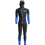 • A very watertight wetsuit that combines a 5 mm ziped hooded jacket and 5 mm full-torso dungaree trousers with a front-zip.