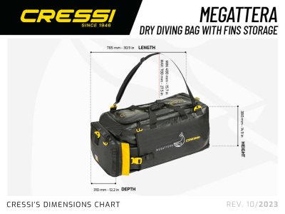 Megattera is a diving bag to carry all your equipment and accessories. It’s equipped with handles and adjustable shoulder strap. Megattera is strong and capacious. It is made of 500 denier tarpaulin, while for the bottom the same material has been used but with an anti-abrasion treatment. Equipped with a practical upper zipper to easily insert all the accessories and diving equipment, megattera has two pockets designed especially for divers. The first is external and closed with a buckle, perfect for carrying diving fins; the second pocket is a waterproof internal compartment for carrying equipment and wet clothes