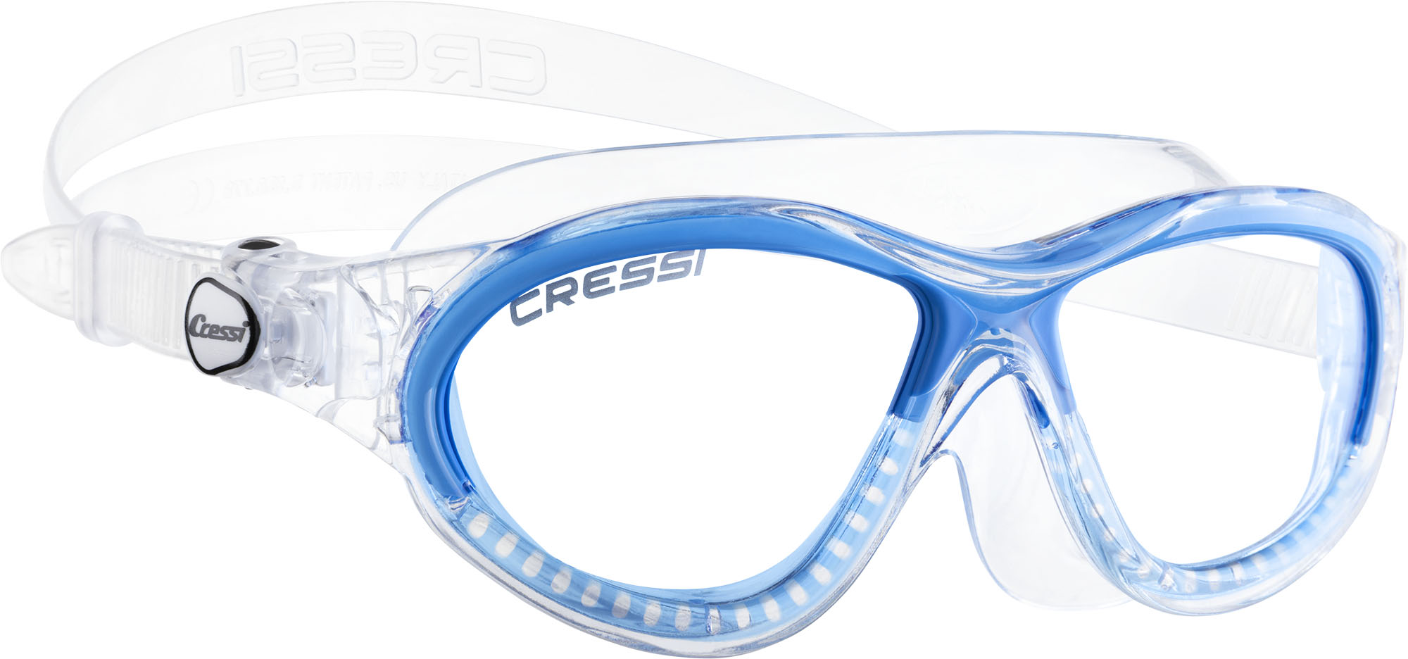 Goggles with a single-piece skirt that is characterised by the presence of an elastic element within the structure that allows a perfect fit on most facial profiles Shatterproof lenses with anti-scratch treatment, UV protection and internal anti-fog treatment Indestructible, micrometrically adjustable buckles. Possibility of i nstantly replacing the buckle-strap structure with other models from the Cressi range. Special packaging maintains these characteristics over time.