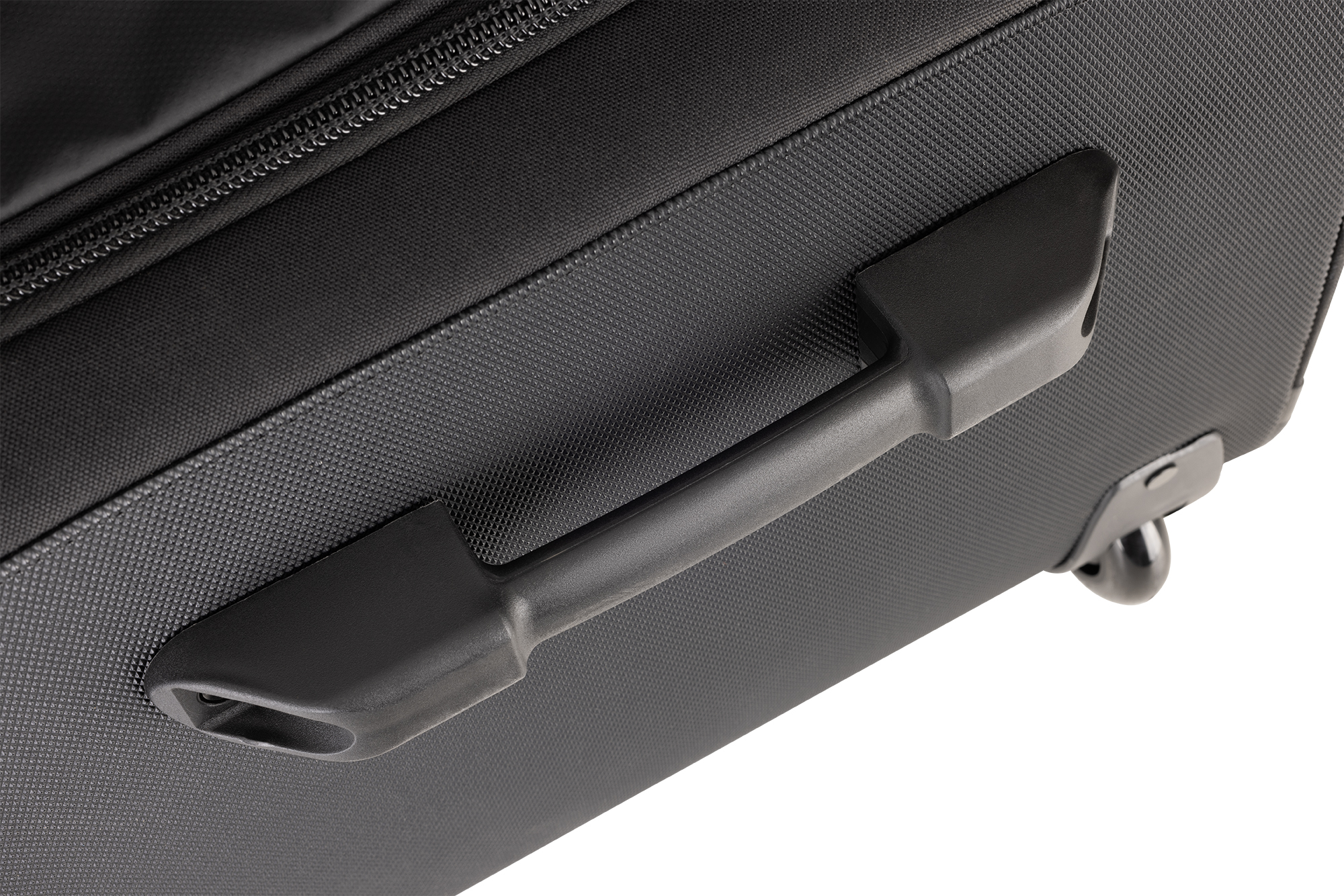 • Adjustable shoulder straps offer flexibility and comfort, allowing for both carrying and rolling options.
