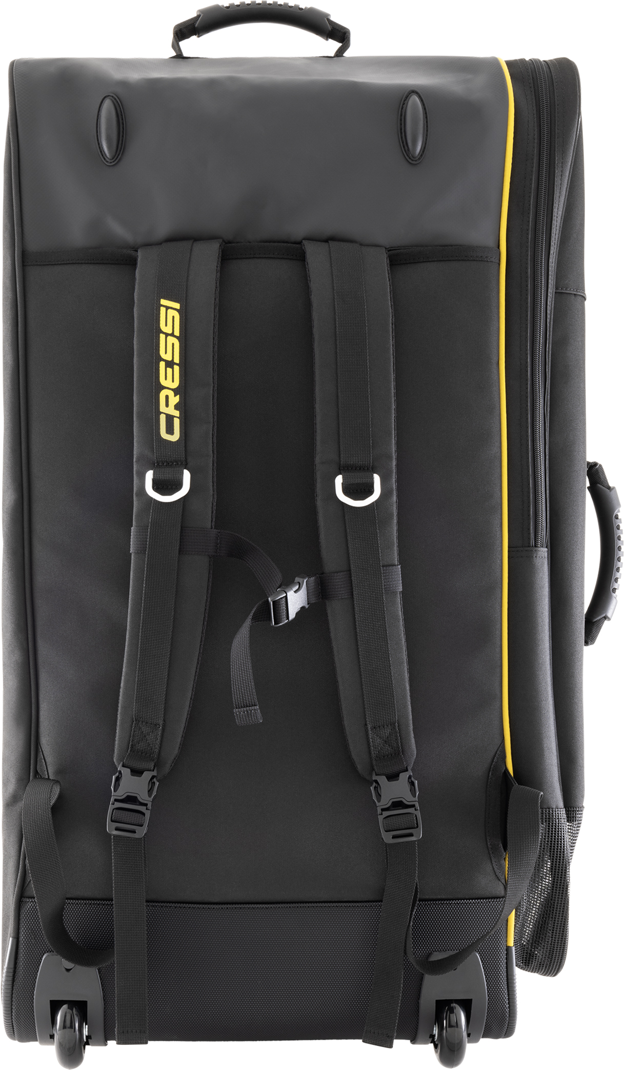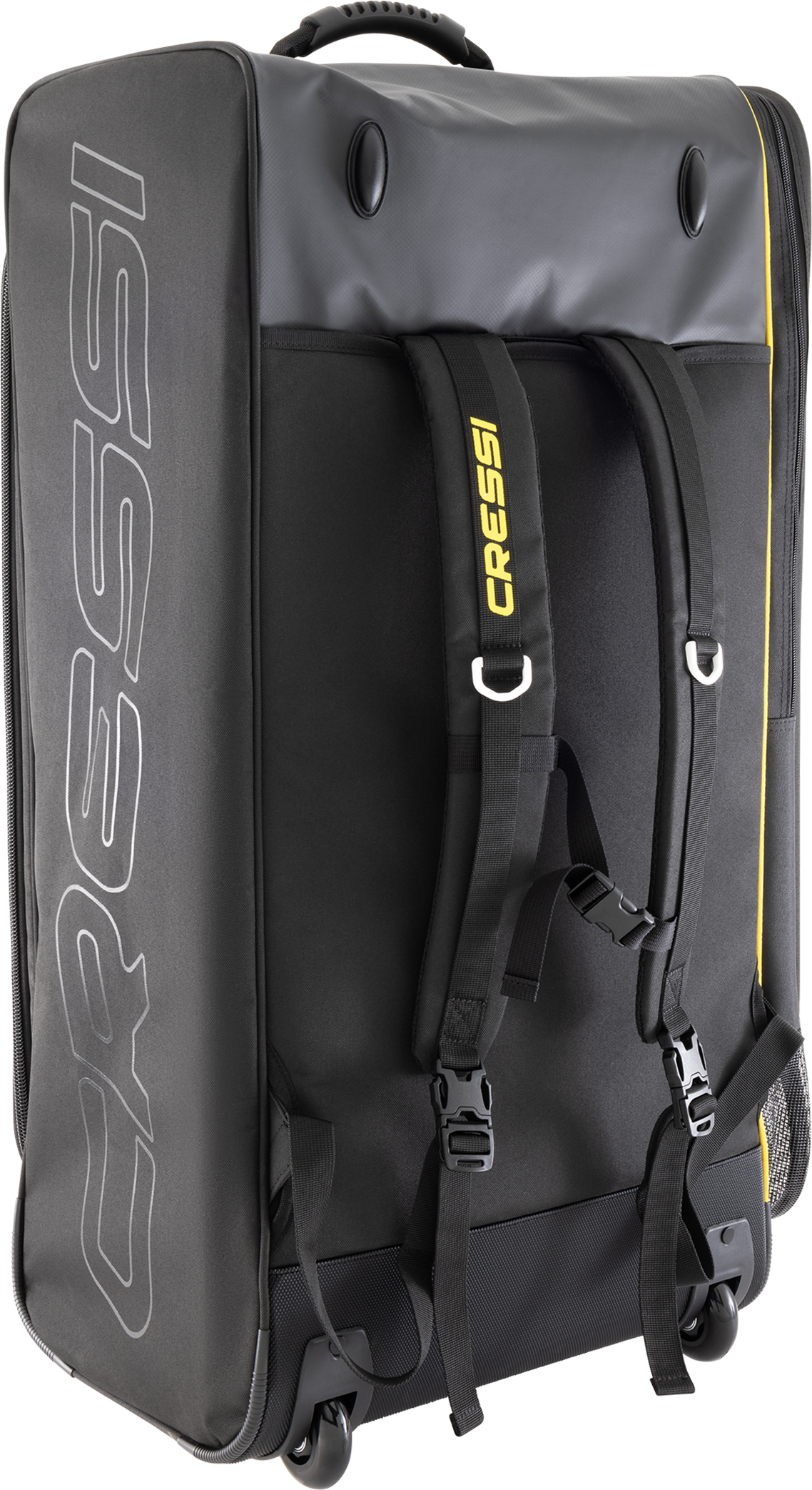 The Cressi Moby 2 is a spacious trolley specifically designed for the transportation of your scuba diving equipment. It boasts dimensions of 85x47x33 cm and a generous capacity of 110 liters. Thanks to its adjustable shoulder straps and robust wheels, the Cressi Moby 2 ensures comfortable and reliable transportation. The trolley is equipped with padded straps that effectively distribute the weight on your shoulders, providing added comfort during transport. Additionally, the Moby 2 features a convenient drainage system pocket, which is ideal for carrying items that are still wet. As part of the Cressi product range, the Moby 2 is just one of several options available.