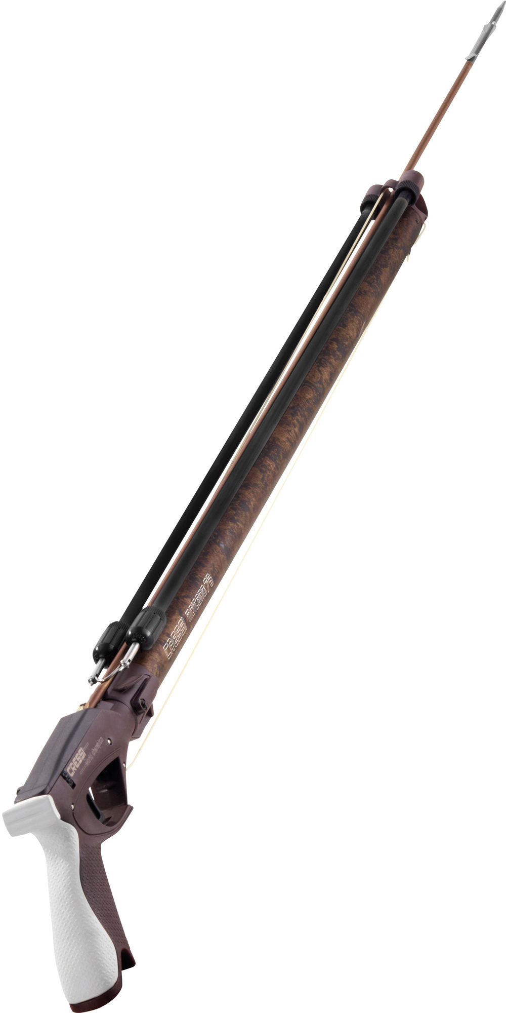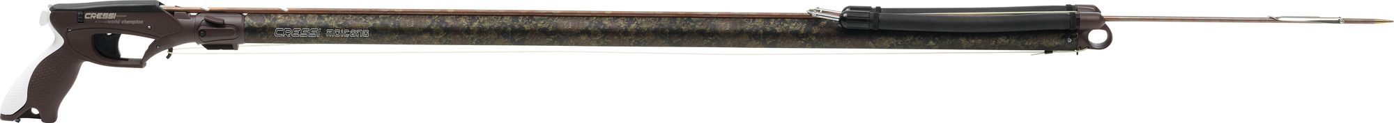 Moicano is a speargun for fast fishing with its excellent handling thanks to its ø26 mm anticorodal aluminum barrel, with an innovative extremely rigid shaft. This combination is a great compromise between structural resilience, low production costs and ease of movement in every direction underwater. It is a very manageable, agile and multipurpose spear gun. Integrated lowfriction guide as the barrel only rests on the two outer corners. The lower part is reinforced with additional thickness. This combination enables the spear gun to remain extraordinarily easy to handle while being more rigid than spear guns that are much larger in diameter. New anatomical butt with integrated minimized load assist, derived from the legendary apache-comanche butt, highly resistant, reliable and appreciated by sports fishermen as a model perfect for fast fishing without problems. This proverbially ergonomic and versatile butt is suitable for every type of fishing and shooting from any position. Smooth and fast coupling of the rod and cassette mechanism, tough, reliable and compatible with all types of shafts, tolerant of different heights, finishings and machining