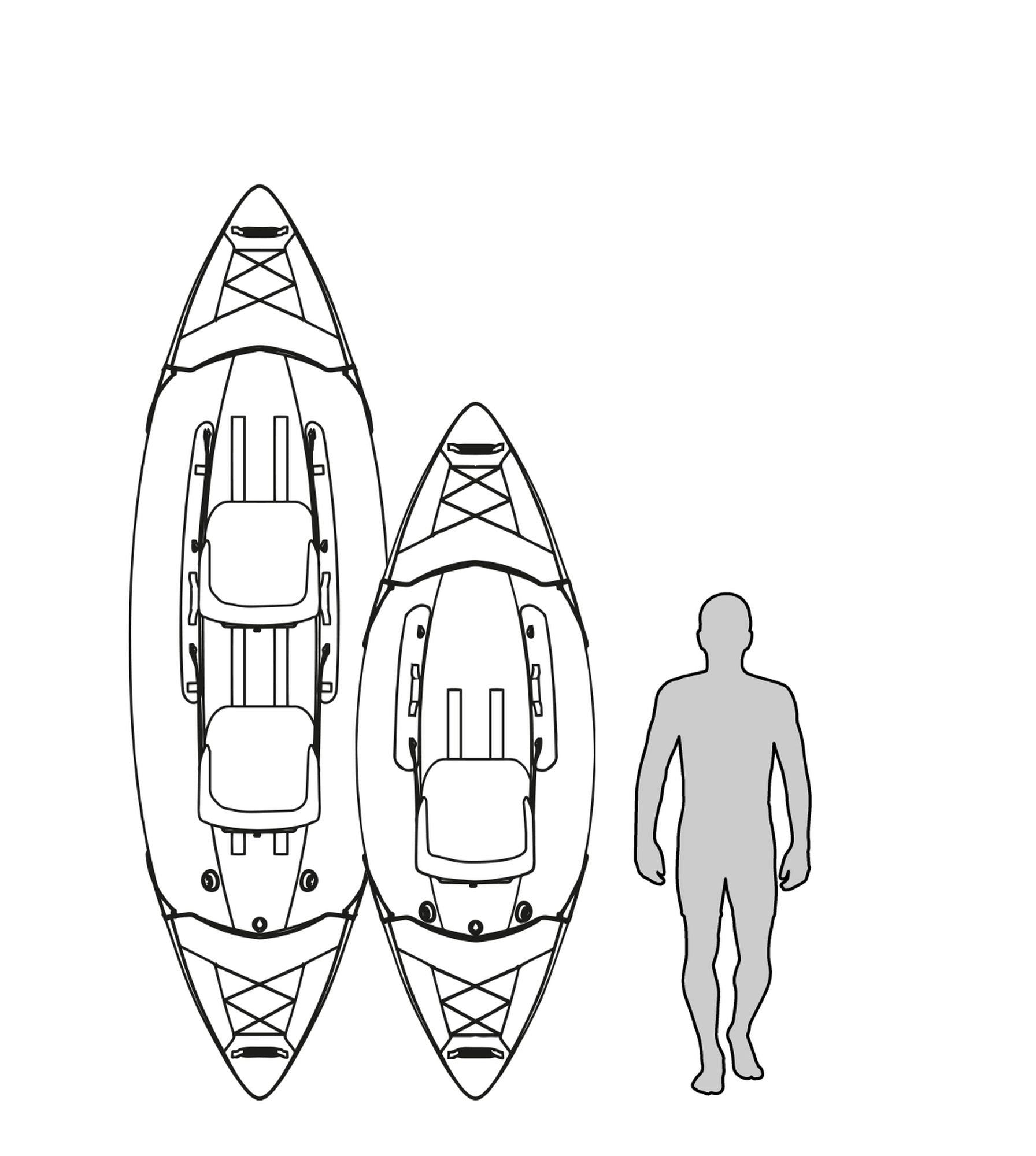 Made of hermetic 1000-denier weft multilayer material to provide the best stiffness/weight ratio. Lateral tubular air chambers with dedicated valves and reinforced anti-abrasion compartment base. Lightweight construction for maximum comfort and performance.