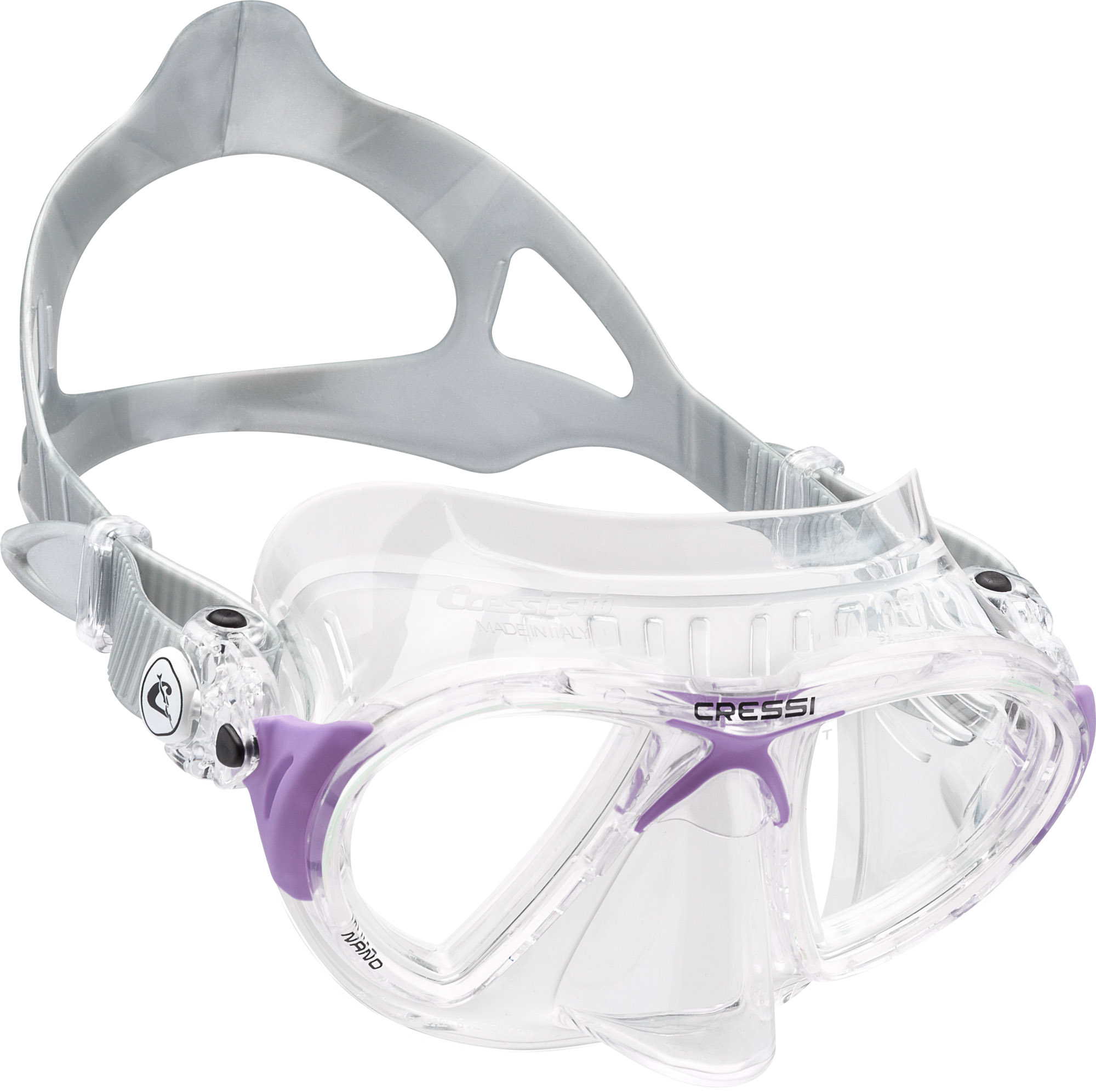 A mask for advanced freediving and spearfishing, designed to offer an extremely hydrodynamic and compact shape to help divers cut through water and aid movement in small spaces. The internal volume is minimal and does not require intentional equalisation. Swivel buckles are equipped with micrometric adjustment. Angled tempered glass lenses. Anatomical strap.