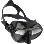 A mask for advanced freediving and spearfishing, designed to offer an extremely hydrodynamic and compact shape to help divers cut through water and aid movement in small spaces. The internal volume is minimal and does not require intentional equalisation. Swivel buckles are equipped with micrometric adjustment. Angled tempered glass lenses. Anatomical strap.