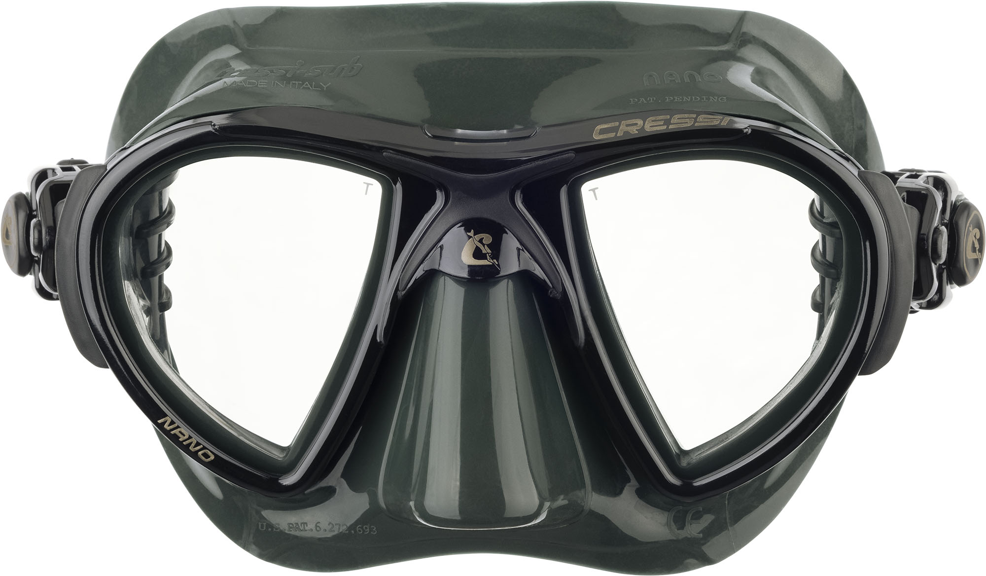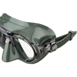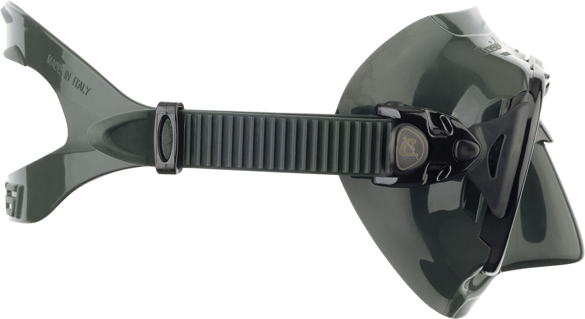 A mask for advanced freediving and spearfishing, designed to offer an extremely hydrodynamic and compact shape to help divers cut through water and aid movement in small spaces. The internal volume is minimal and does not require intentional equalisation. Swivel buckles are equipped with micrometric adjustment. Angled tempered glass lenses. Anatomical strap.