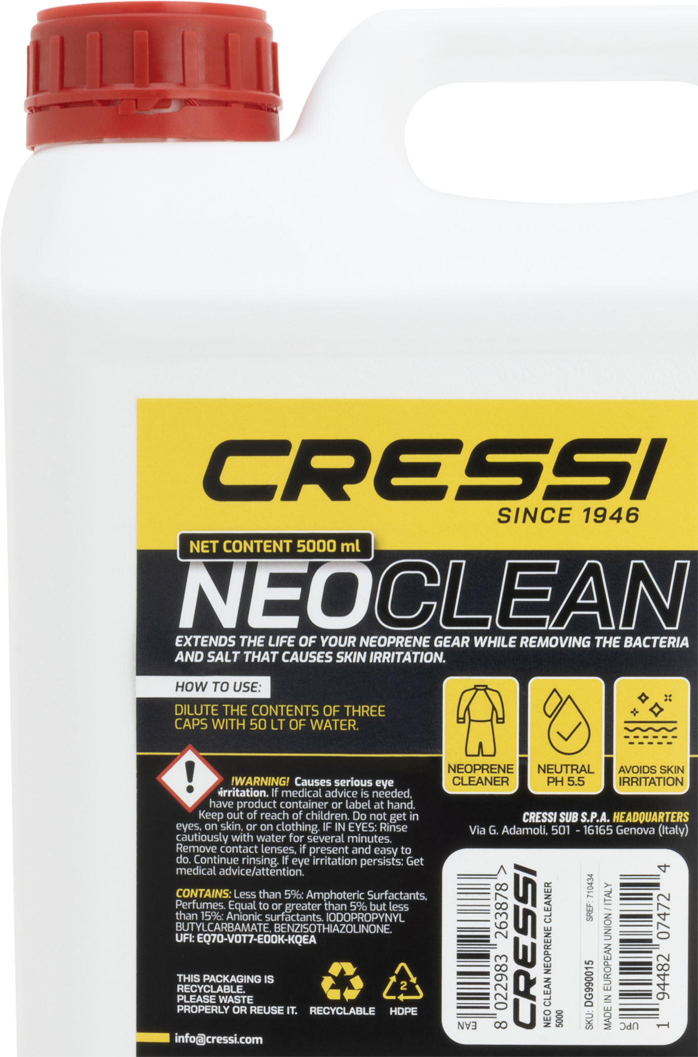 The Cressi Neo Cleaner is Provided in a “user” or “rental” container of 500ml or 5000ml. It’s a low acid detergent (PH 5.5) useful to clean the neoprene elements and to wear microporous suits avoiding skin irritations. This formula is created to minimize its impact on aquatic ecosystems, making it an excellent choice for those who care about protecting our seas.