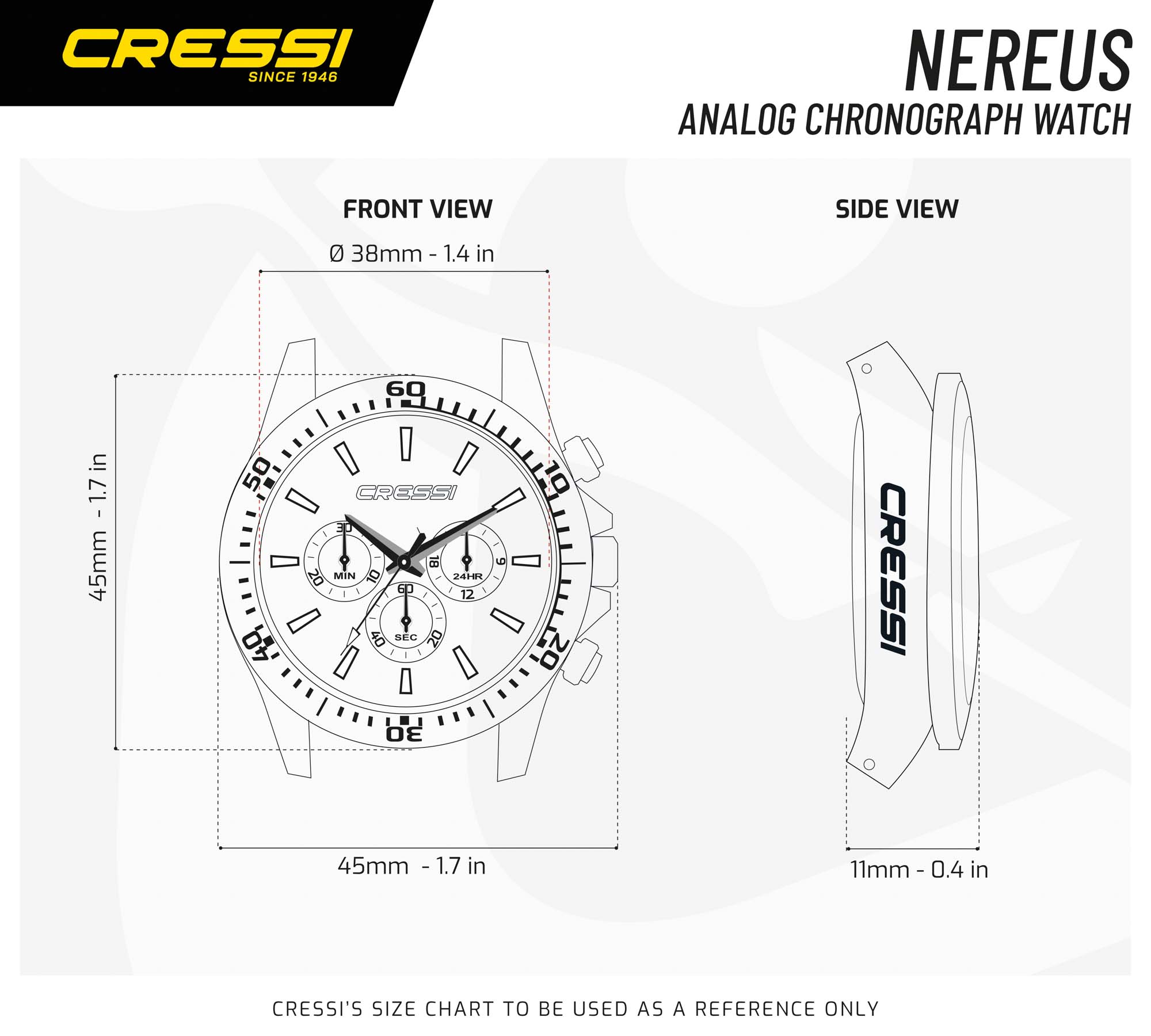 Designed in italy by cressi, this watch can be used during water sports or in physical education and sometimes during training. It is practical, quick and easy to use. Fluorescent hour / minute / second hands are easy to read in low-light conditions