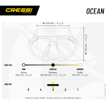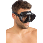 The patented concept of raked lenses and their special “inverted drop” is developed further here. The lenses are placed as closely as possible to the eyes, with the further increase in the field of vision taken to the maximum levels possible. The soft silicone skirt has a new profile and a wide sealing ring for excellent grip and unprecedented comfort. The internal volume of the masks is exceptionally low, lower than that of many free diving models and the weight is decidedly low. Two pressure buckles, integrated into the headband, allow for quick and accurate adjustment of the strap