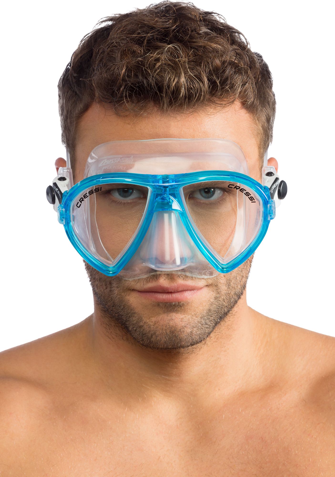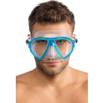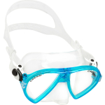 The patented concept of raked lenses and their special “inverted drop” is developed further here. The lenses are placed as closely as possible to the eyes, with the further increase in the field of vision taken to the maximum levels possible. The soft silicone skirt has a new profile and a wide sealing ring for excellent grip and unprecedented comfort. The internal volume of the masks is exceptionally low, lower than that of many free diving models and the weight is decidedly low. Two pressure buckles, integrated into the headband, allow for quick and accurate adjustment of the strap