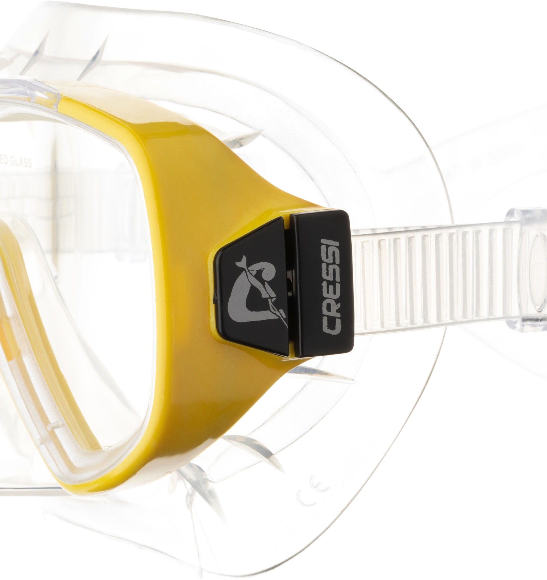 • Unique frame shape and single lens design offer extended visibility in all directions, enhancing the underwater experience.
