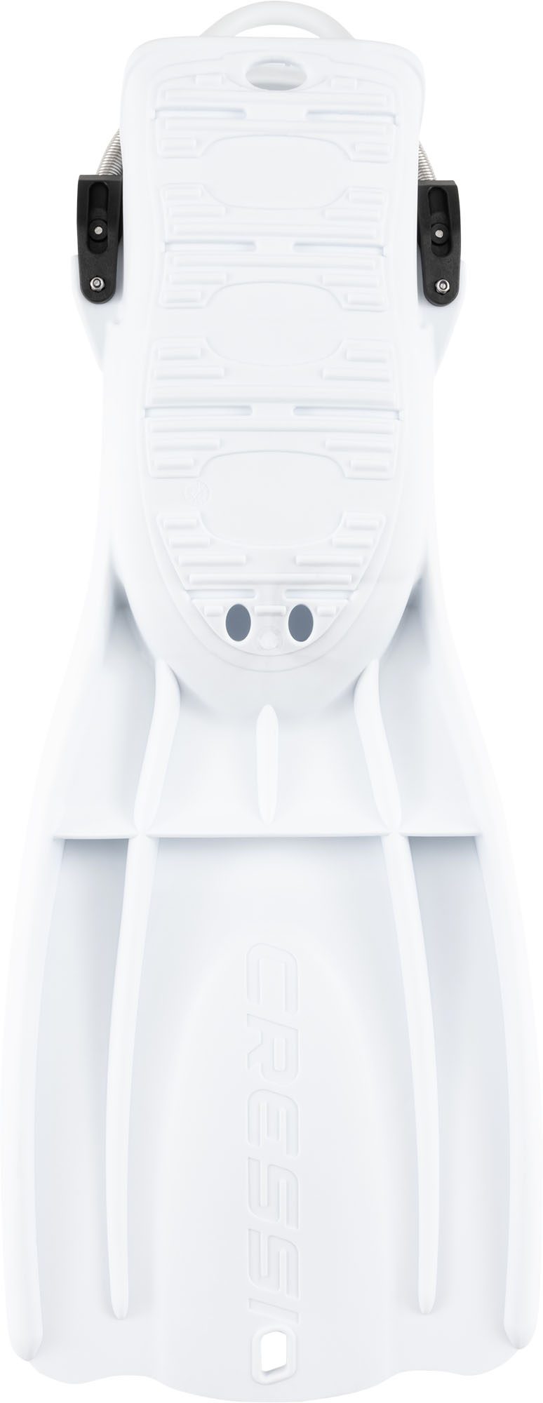 Two attachment points, one at the tip of the blade and one on the heel pad, allow users to clip off their fins while accessing the dive site and during vertical storage.