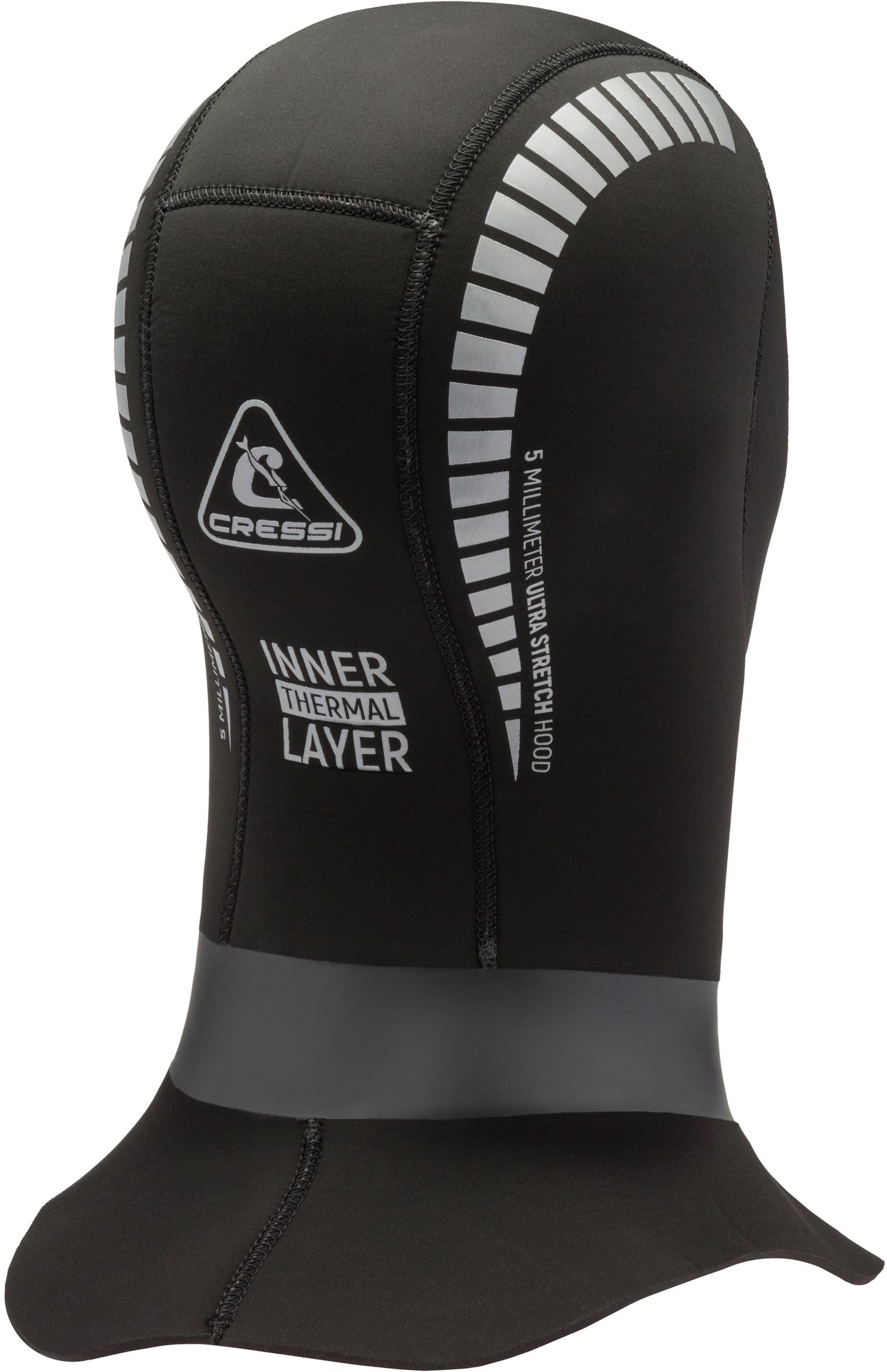 Hood with an oversized crew neck that allows a better water tightness for those who want to use it by inserting it under the neck of the wetsuit. It is particularly suitable for one-piece wetsuits with a front zip. Anatomical cut. 100% high-stretch material. 3 mm smooth skin with watertight seals around the face and the neck