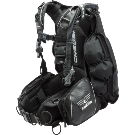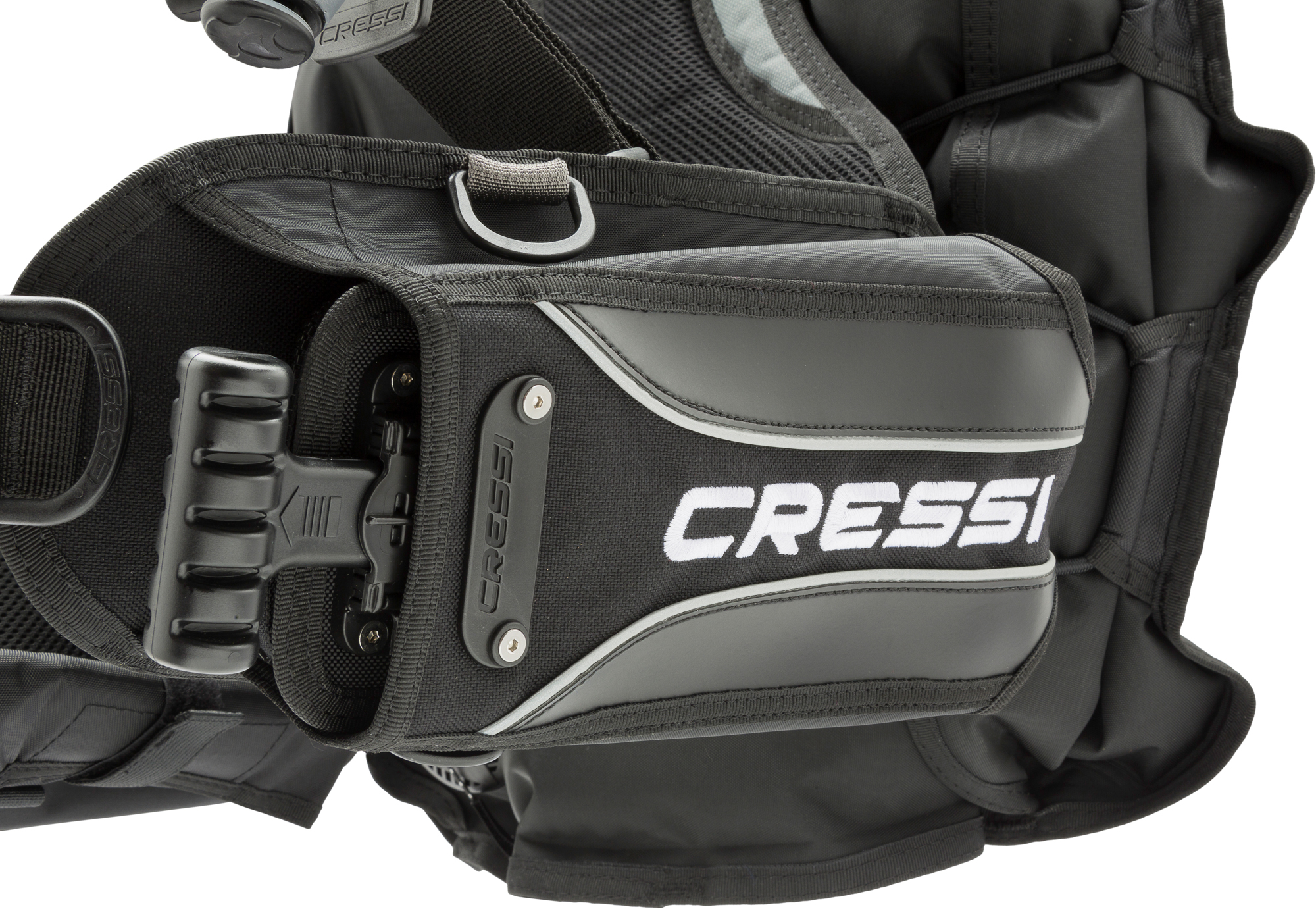 Cressi’s Flat Lock Aid integrated weight system keeps your weight secure while allowing for quick release when needed. Optional cylinder strap weight pockets can be used for additional buoyancy control and improved trim.