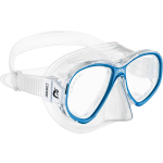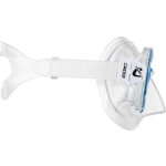 Smaller version of the PERLA mask, suitable for women and young people. This mask has separate lenses, a skirt edge that adapts to most faces and a small inner volume, perfect for free-divers. The skirt is made from soft hypoallergenic transparent silicone. The visibility provided by the double lens and the unusual shape of the frame extends in all directions. Excellent seal on many face types. Quick-release strap buckles.