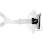 A mask particularly suitable for free diving and snorkeling, but just as appropriate for use in scuba diving. It has separate lenses, a skirt edge fitting most of the faces and a small inner volume, perfect for free-divers. Sturdy tempered glass, polycarbonate frame. It is made from soft transparent or dark silicone, and comes with strong rapid action buckles to adjust the strap. The quality of the assembly and of the materials is the same as the most technical range