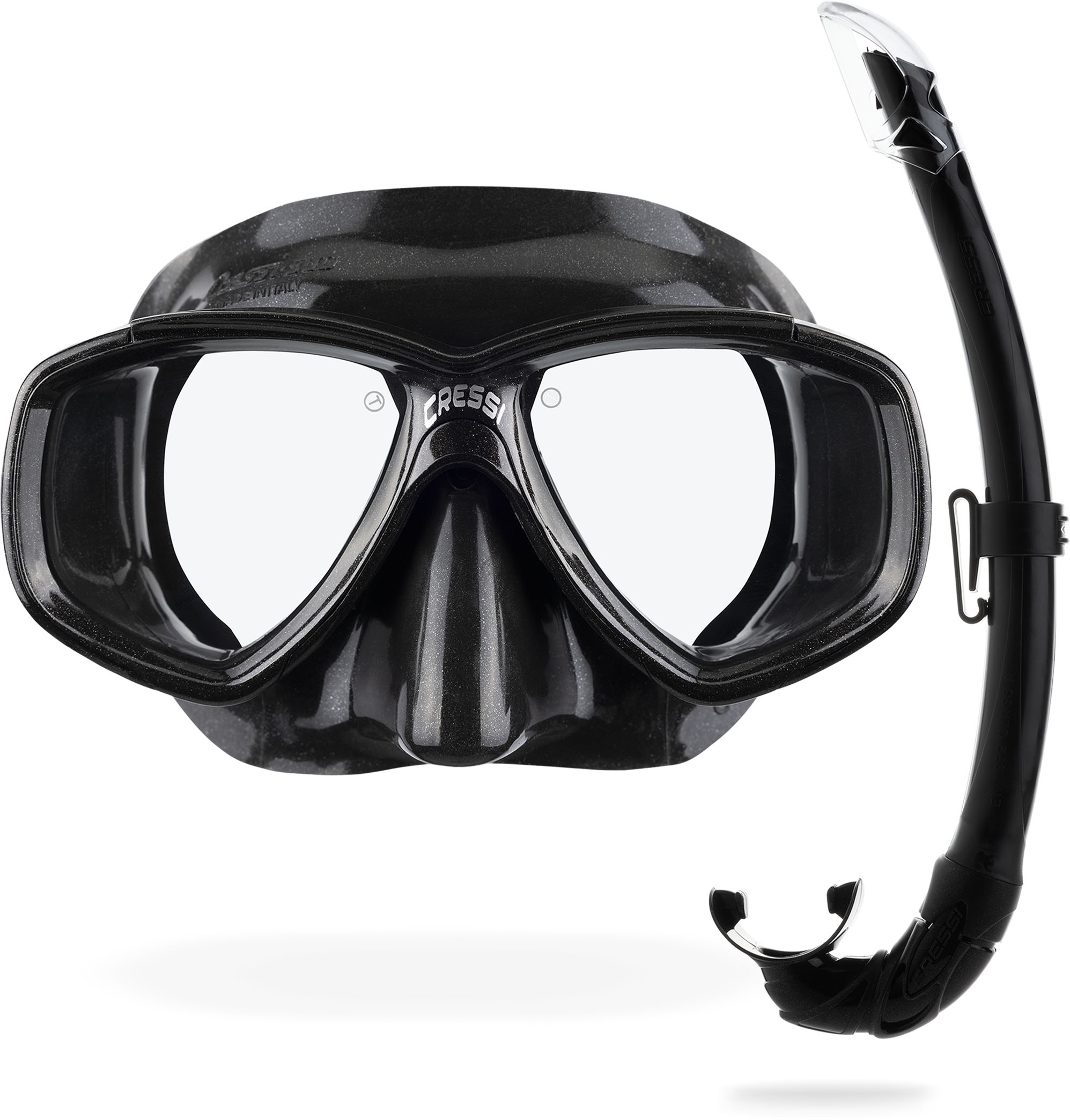 Set consisting of a perla mask made of hypoallergenic silicone + gamma regulator. A mask particularly suitable for free diving, snorkeling and use with self-breathing apparatus. It has separate glass panes, a soft face, an internal flange that adapts to most facial contours and offers a high level of comfort. The internal volume is significantly reduced, good for apnea. Made of soft, hypoallergenic silicone, it has sturdy buckles for adjusting the strap. Cressi model with a flexible and molded hose that optimally adapts to different face shapes. Mexico has a molded splash guard that drastically reduces the amount of water entering from above, without obstructing breathing. Anatomically shaped mouthpiece made of transparent and hypoallergenic silicone.