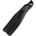 A highly advanced design for this fin that is moulded from two materials with very different characteristics: a strong polypropylene for the blade and soft elastomers (thermo rubber) for the foot and protective inserts. The result is an extremely light and well-balanced fin, of average size, with surprising reaction time and a formidable thrust. The side stringers that extend all along the blade and two flaps situated along the end of the blade itself make the fin very directional. The blade originates from the upper part of the foot pocket, with a 20% increase in useful surface area compared to a traditional fin of the same length. The foot pocket is computer designed and guarantees ideal transmission of the leg-fin thrust. The lightness and perfect balance of the materials, together with the extremely modern design, make rondine pro light a generous fin that provides exuberant performance without too much physical effort. These fins are perfect both for beginners and for professionals and are very common amongst instructors and technical divers