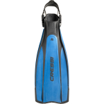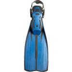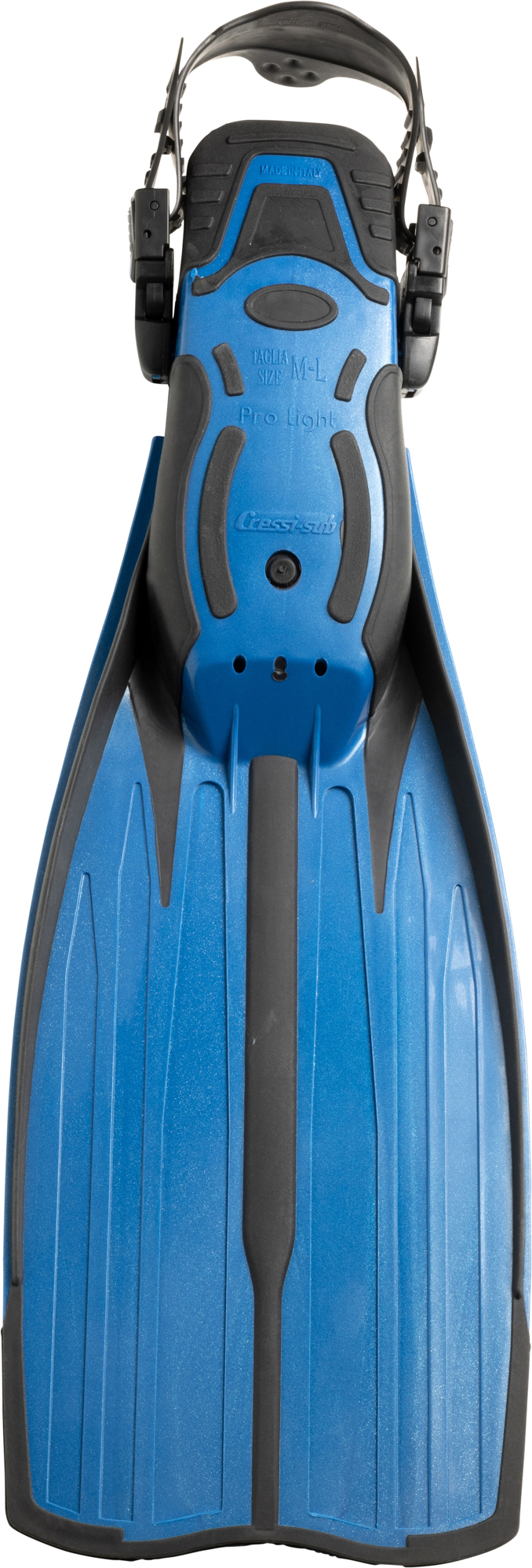 A highly advanced design for this fin that is moulded from two materials with very different characteristics: a strong polypropylene for the blade and soft elastomers (thermo rubber) for the foot and protective inserts. The result is an extremely light and well-balanced fin, of average size, with surprising reaction time and a formidable thrust. The side stringers that extend all along the blade and two flaps situated along the end of the blade itself make the fin very directional. The blade originates from the upper part of the foot pocket, with a 20% increase in useful surface area compared to a traditional fin of the same length. The foot pocket is computer designed and guarantees ideal transmission of the leg-fin thrust. The lightness and perfect balance of the materials, together with the extremely modern design, make rondine pro light a generous fin that provides exuberant performance without too much physical effort. These fins are perfect both for beginners and for professionals and are very common amongst instructors and technical divers