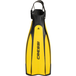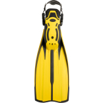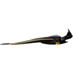 A highly advanced design for this fin that is moulded from two materials with very different characteristics: a strong polypropylene for the blade and soft elastomers (thermo rubber) for the foot and protective inserts. The result is an extremely light and well-balanced fin, of average size, with surprising reaction time and a formidable thrust. The side stringers that extend all along the blade and two flaps situated along the end of the blade itself make the fin very directional. The blade originates from the upper part of the foot pocket, with a 20% increase in useful surface area compared to a traditional fin of the same length. The foot pocket is computer designed and guarantees ideal transmission of the leg-fin thrust. The lightness and perfect balance of the materials, together with the extremely modern design, make rondine pro light a generous fin that provides exuberant performance without too much physical effort. These fins are perfect both for beginners and for professionals and are very common amongst instructors and technical divers