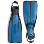 A highly advanced design for this fin that is moulded from two materials with very different characteristics: a strong polypropylene for the blade and soft elastomers (thermo rubber) for the foot and protective inserts. The result is an extremely light and well-balanced fin, of average size, with surprising reaction time and a formidable thrust. The side stringers that extend all along the blade and two flaps situated along the end of the blade itself make the fin very directional. The blade originates from the upper part of the foot pocket, with a 20% increase in useful surface area compared to a traditional fin of the same length. The foot pocket is computer designed and guarantees ideal transmission of the leg-fin thrust. The lightness and perfect balance of the materials, together with the extremely modern design, make rondine pro light a generous fin that provides exuberant performance without too much physical effort. These fins are perfect both for beginners and for professionals and are very common amongst instructors and technical divers