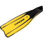 Pro star is yet another versatile fin in the cressi line and is an exceptional choice for scuba, snorkeling and freediving. Inspired by the pro light, the pro star is a lightweight and comfortable full foot pocket style fin. For power transference, it incorporates the blade beneath the foot pocket and the angle of the blade provides the ultimate in efficiency during the kick cycle requiring less energy to load the blade. This fin is constructed using multiple compounds bonded together to provide comfort around the foot, yet strong enough to transfer strength where needed. Can comfortably be worn with or without neoprene socks