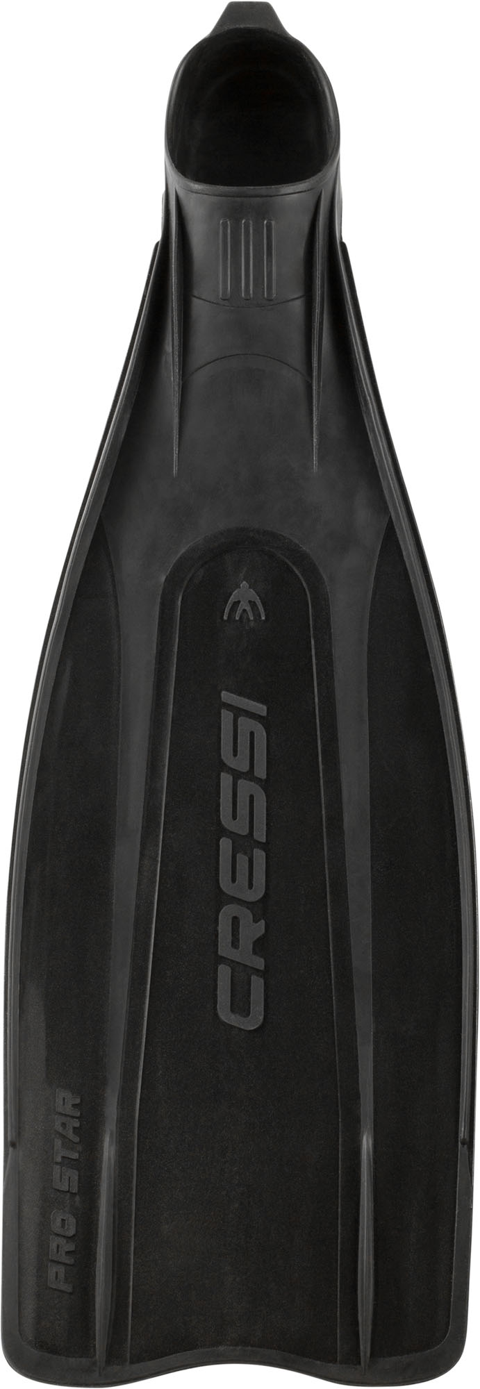 Pro star is yet another versatile fin in the cressi line and is an exceptional choice for scuba, snorkeling and freediving. Inspired by the pro light, the pro star is a lightweight and comfortable full foot pocket style fin. For power transference, it incorporates the blade beneath the foot pocket and the angle of the blade provides the ultimate in efficiency during the kick cycle requiring less energy to load the blade. This fin is constructed using multiple compounds bonded together to provide comfort around the foot, yet strong enough to transfer strength where needed. Can comfortably be worn with or without neoprene socks