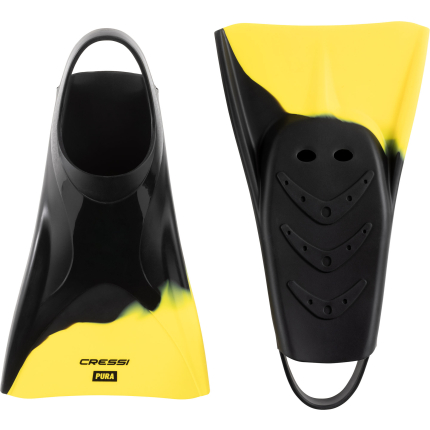 Pura swimming fins are made of highly versatile and comfortable silicone. These fins are designed for swimmers who wish to intensively train their legs and ankles, increasing strength in the abdominal and lumbar region. Made of 100% silicone, the Pura fins are easy to wear. This model of short fins completes the Cressi swimming line at its best. Overall, these fins are great for family snorkelling trips and will allow for hours of underwater exploration.