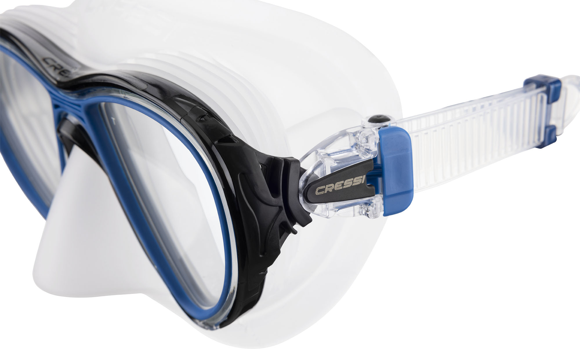 A patented membrane surrounding the inner nose pocket and both the inner eyes pockets which acts as a barrier and traps any moisture escaping from the diver’s nose involuntarily when breathing through the mouth. the result is that not only is the moisture channeled away from the lenses, thus avoiding the fogging up of them, but it also reduces the need to compensate for pressure. to further improve the anti-fog effect, cressi suggests, the first times that the dive mask is used, to spray some anti-fog solution or to apply some saliva on the inside of the lenses and then to rinse them with water.
