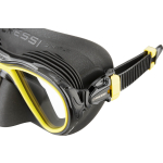 A patented membrane surrounding the inner nose pocket and both the inner eyes pockets which acts as a barrier and traps any moisture escaping from the diver’s nose involuntarily when breathing through the mouth. the result is that not only is the moisture channeled away from the lenses, thus avoiding the fogging up of them, but it also reduces the need to compensate for pressure. to further improve the anti-fog effect, cressi suggests, the first times that the dive mask is used, to spray some anti-fog solution or to apply some saliva on the inside of the lenses and then to rinse them with water.