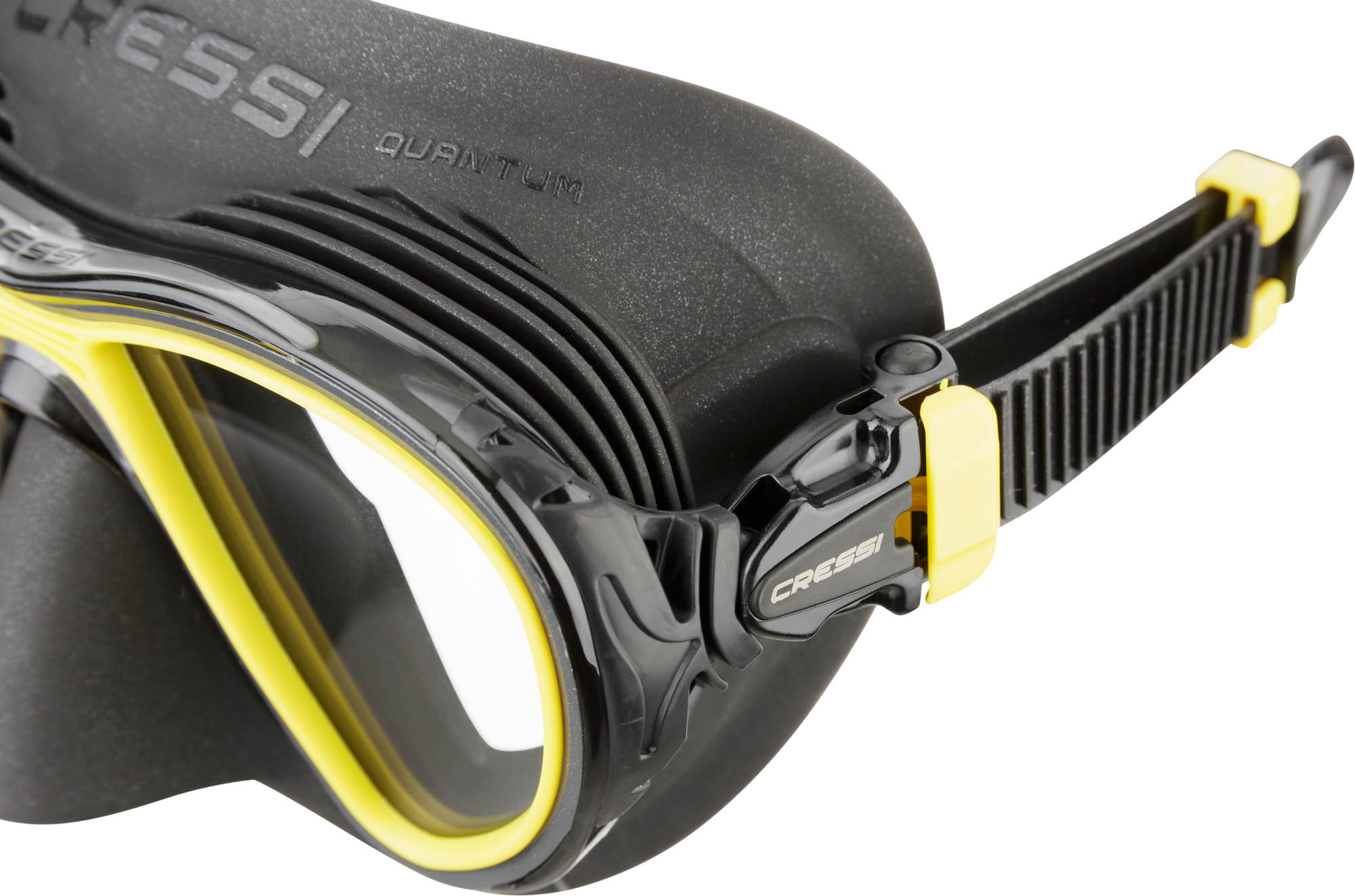 membranes deviating the air flow and the external heat exchangers, the body of the Quantum masks is nonetheless compact and represents the most advanced design offered on the underwater vision market. The lenses are not treated chemically and it should be remembered that when the masks