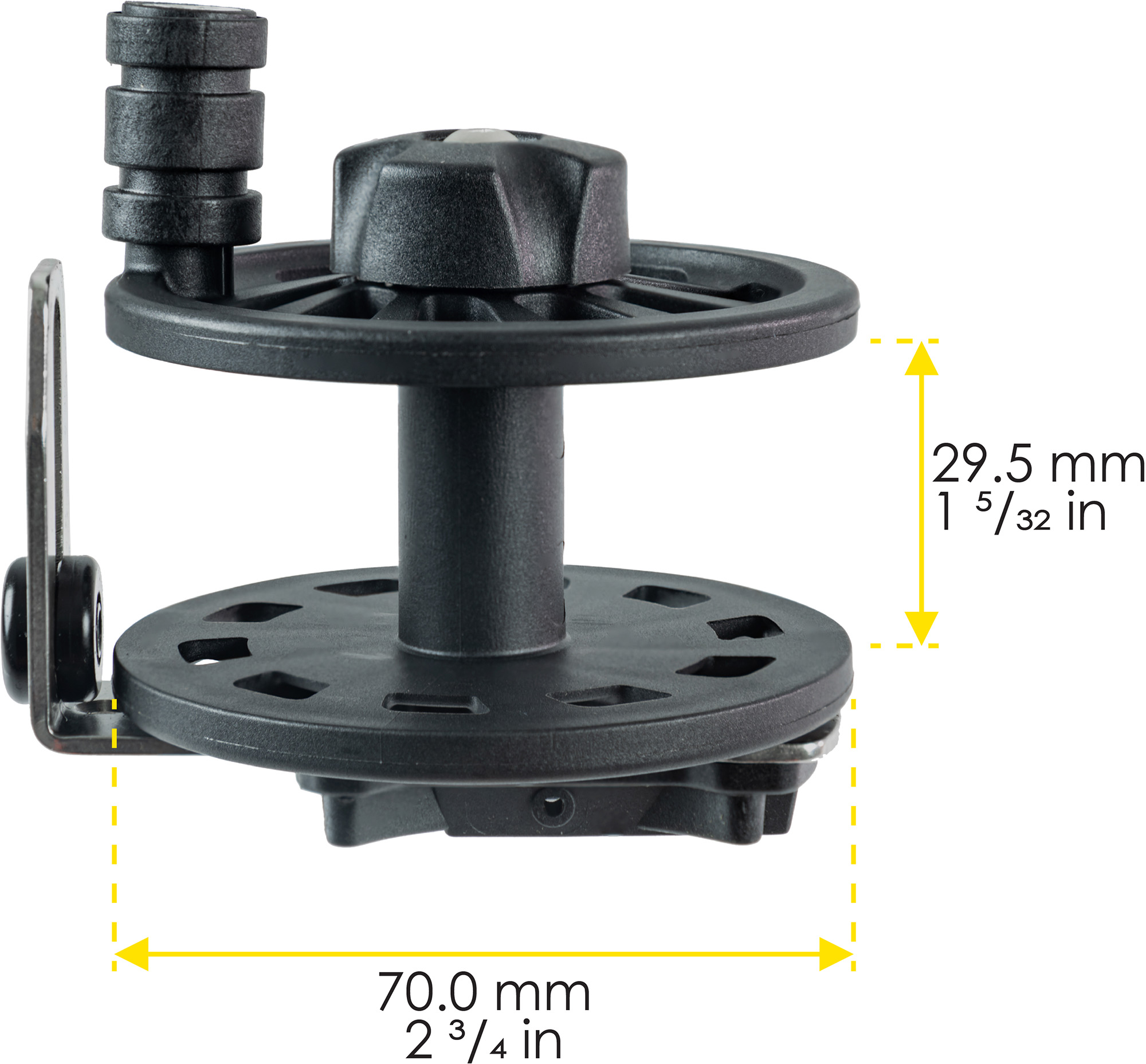 The frame and the central pin are in aisi 316 steel. The drilling on the frame itself allows it to be used also on arbalete spearguns of different brands. The special clutch provides an excellent closing torque. The assembly system allows easy maintenance and cleaning. All sizes are equipped with a rewinder ring and size r50 is also equipped with an antiblocking roller. The models r30 and r50 are equipped with a lightened drum in order to weigh as little as possible on the balance of the speargun