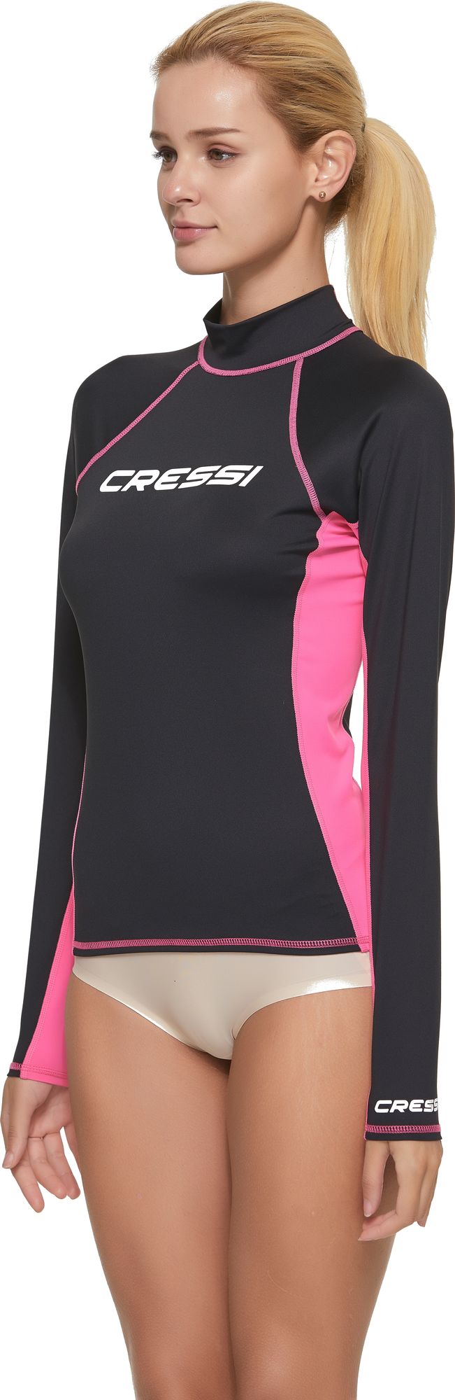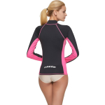 Long-sleeve protective rash guard made with high quality materials. Soft and stretchy, it offers a great fit that adheres to the body. Ideal for diving, snorkeling, surfing, and other water sports. It protects against chafing caused by sports equipment and provides 50+ sun protection against harmful uv rays