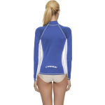 Long-sleeve protective rash guard made with high quality materials. Soft and stretchy, it offers a great fit that adheres to the body. Ideal for diving, snorkeling, surfing, and other water sports. It protects against chafing caused by sports equipment and provides 50+ sun protection against harmful uv rays