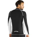 Long-sleeve protective rash guard made with high quality materials. Soft and stretchy, it offers a great fit that adheres to the body. Ideal for diving, snorkeling, surfing, and other water sports. It protects against chafing caused by sports equipment and provides 50+ sun protection against harmful uv rays