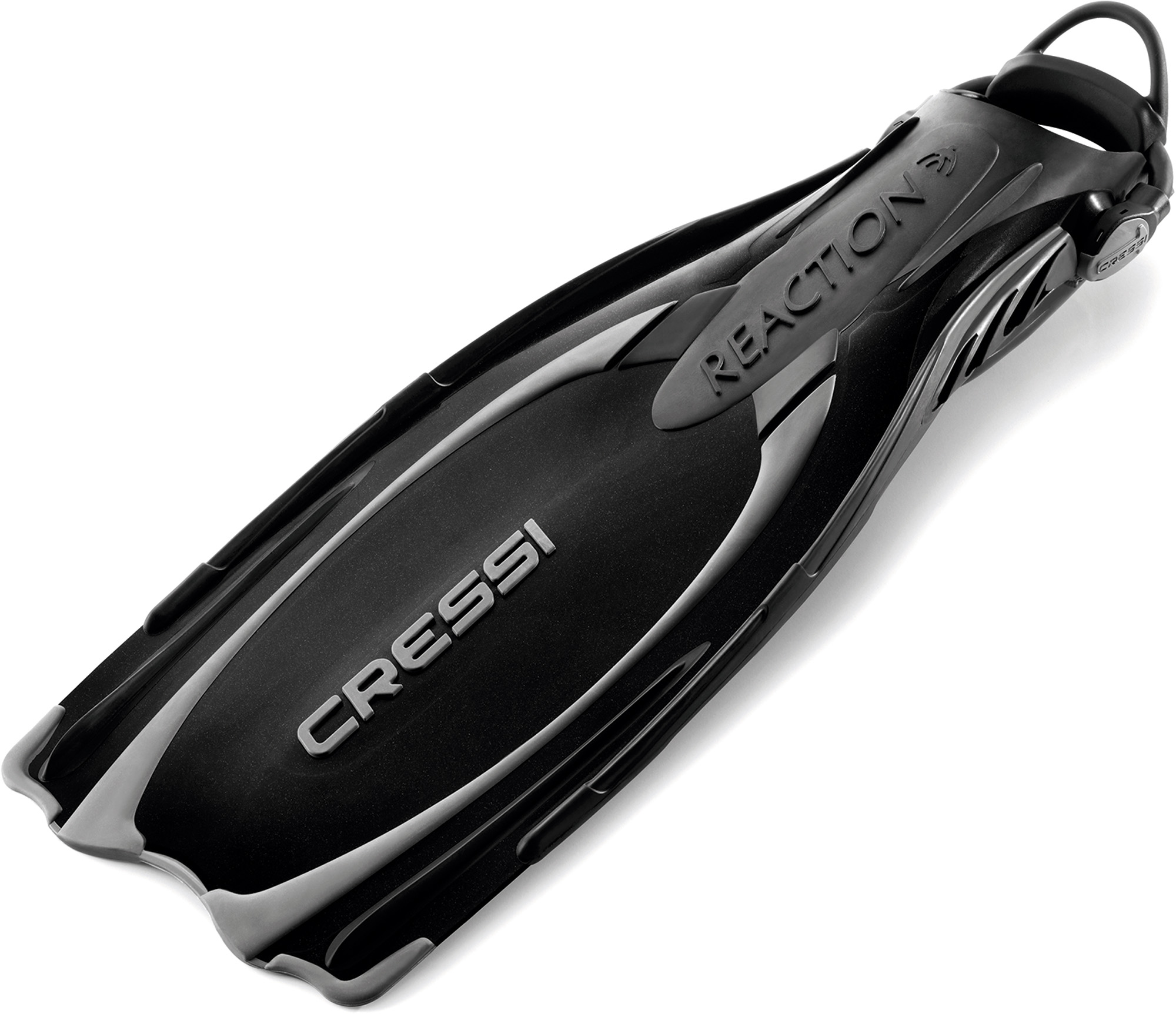Reaction capitalizes on exclusive patented cressi moulding technology that uses three materials and guarantees unparalleled performance. Reaction picks up on many of the innovative characteristics introduced by the rondine a, such as how the blade originates directly from the back of the footpocket, the blade with differential thickness, the dual-material stringers, the sole molded entirely in non-slip material, the extremely comfortable foot compartment designed by computer, and the innovative secure buckles. Along with these excellent features, reaction adds a new longer, more flexible, and lighter blade that can produce excellent propulsive thrust with minimal muscle fatigue and wasted energy. The perfect fin for the modern diver, beginners and professionals alike, it’s lightweight, easy to use, and non-fatiguing, but still capable of producing impressive propulsive output, sufficient to safely tackle even the most critical diving situations