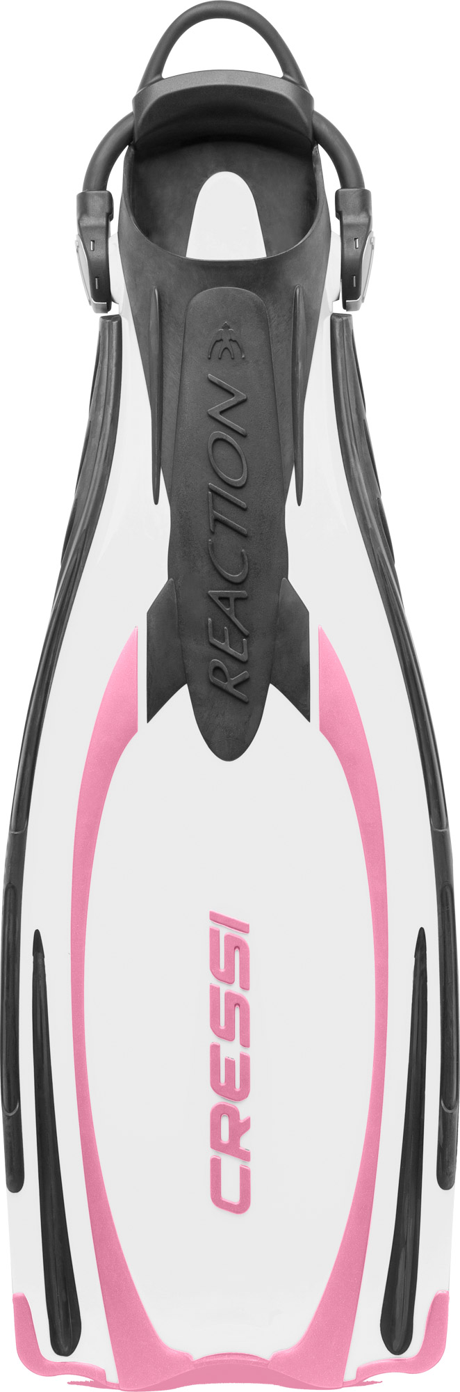 Reaction capitalizes on exclusive patented cressi moulding technology that uses three materials and guarantees unparalleled performance. Reaction picks up on many of the innovative characteristics introduced by the rondine a, such as how the blade originates directly from the back of the footpocket, the blade with differential thickness, the dual-material stringers, the sole molded entirely in non-slip material, the extremely comfortable foot compartment designed by computer, and the innovative secure buckles. Along with these excellent features, reaction adds a new longer, more flexible, and lighter blade that can produce excellent propulsive thrust with minimal muscle fatigue and wasted energy. The perfect fin for the modern diver, beginners and professionals alike, it’s lightweight, easy to use, and non-fatiguing, but still capable of producing impressive propulsive output, sufficient to safely tackle even the most critical diving situations