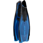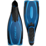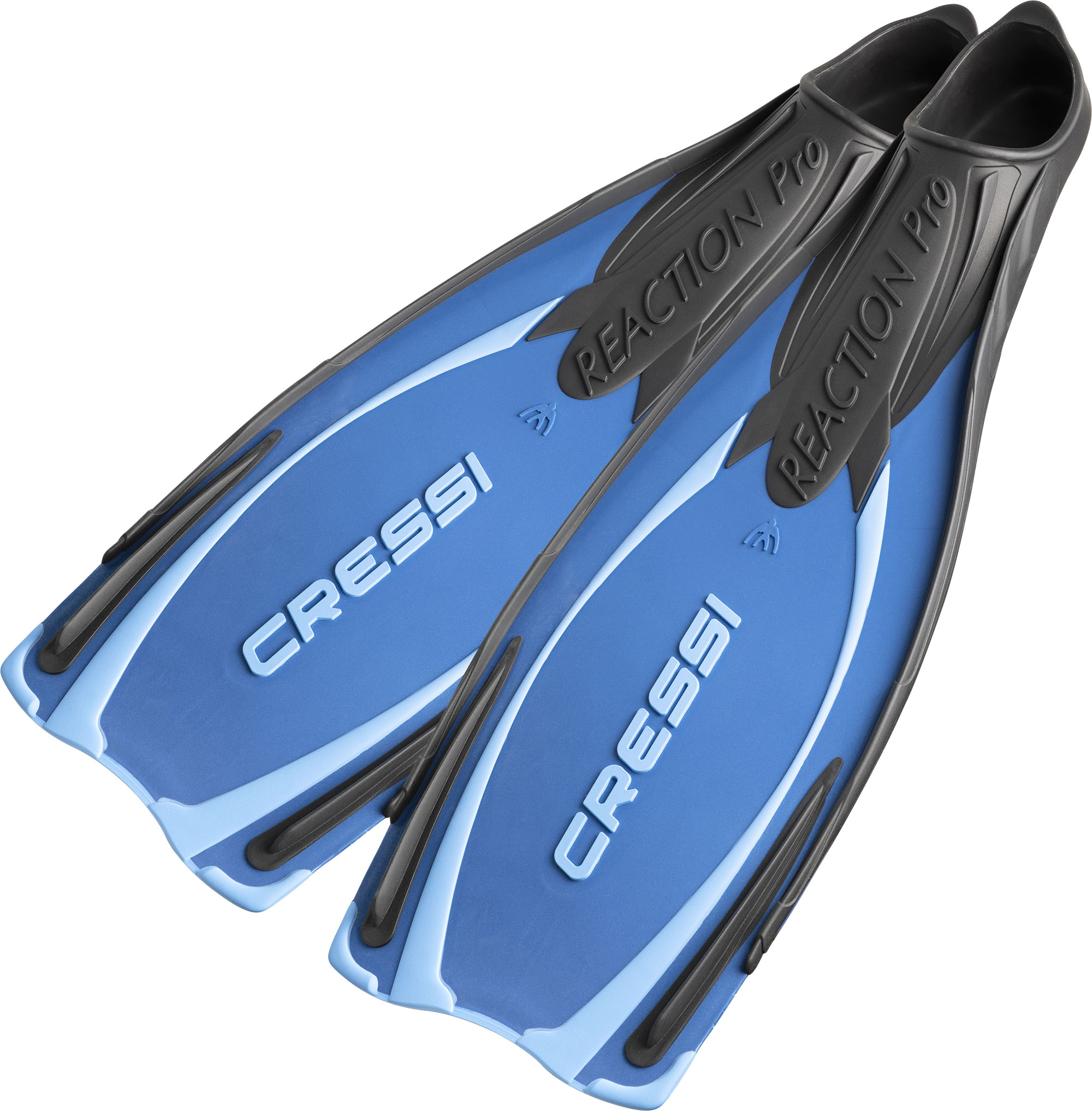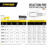 Reaction pro is an adventuresome fin derived from cressi deep freediving models, which also introduces the use of more responsive materials to the sector of normal-length full-foot fins. The blade is not in fact made using a copolymer, but instead it is polypropylene, which is exceptionally lightweight and responsive. This material is paired with a comfortable thermo-rubber that is used in the footpocket, the side stringers, and the various inserts. The blade starts from the upper side of the footpocket, increasing the useable surface by 20% over traditional fins of similar length. The optimized, highly anatomical footpocket is designed by computer, ensuring that leg-to-fin power is conveyed perfectly