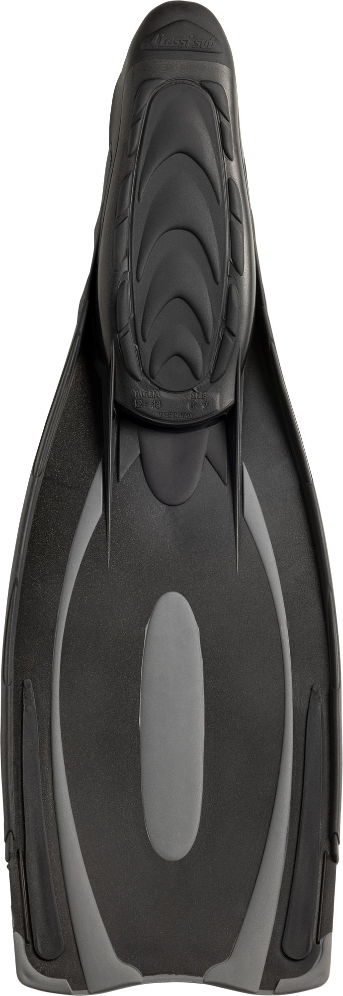 Reaction pro is an adventuresome fin derived from cressi deep freediving models, which also introduces the use of more responsive materials to the sector of normal-length full-foot fins. The blade is not in fact made using a copolymer, but instead it is polypropylene, which is exceptionally lightweight and responsive. This material is paired with a comfortable thermo-rubber that is used in the footpocket, the side stringers, and the various inserts. The blade starts from the upper side of the footpocket, increasing the useable surface by 20% over traditional fins of similar length. The optimized, highly anatomical footpocket is designed by computer, ensuring that leg-to-fin power is conveyed perfectly