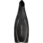 Reaction pro is an adventuresome fin derived from cressi deep freediving models, which also introduces the use of more responsive materials to the sector of normal-length full-foot fins. The blade is not in fact made using a copolymer, but instead it is polypropylene, which is exceptionally lightweight and responsive. This material is paired with a comfortable thermo-rubber that is used in the footpocket, the side stringers, and the various inserts. The blade starts from the upper side of the footpocket, increasing the useable surface by 20% over traditional fins of similar length. The optimized, highly anatomical footpocket is designed by computer, ensuring that leg-to-fin power is conveyed perfectly