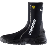 Boots designed to be used with open heel fins, are made of soft nylon-lined neoprene 5 mm, ideal for cooler waters. Reinforced pu protection for instep and heel provides resistance against wear and tear. The notch for holding fin strap is integrated into the heel. A practical ykk zipper opens at the ankle for easy donning. Water seepage is reduced to the minimum thanks to a protective thin flap hydro seal under zip. The Cressi personalized ankle strap has a velcro in the inner part. A rigid, non-slip and hi-grip moulding covers the entire sole.